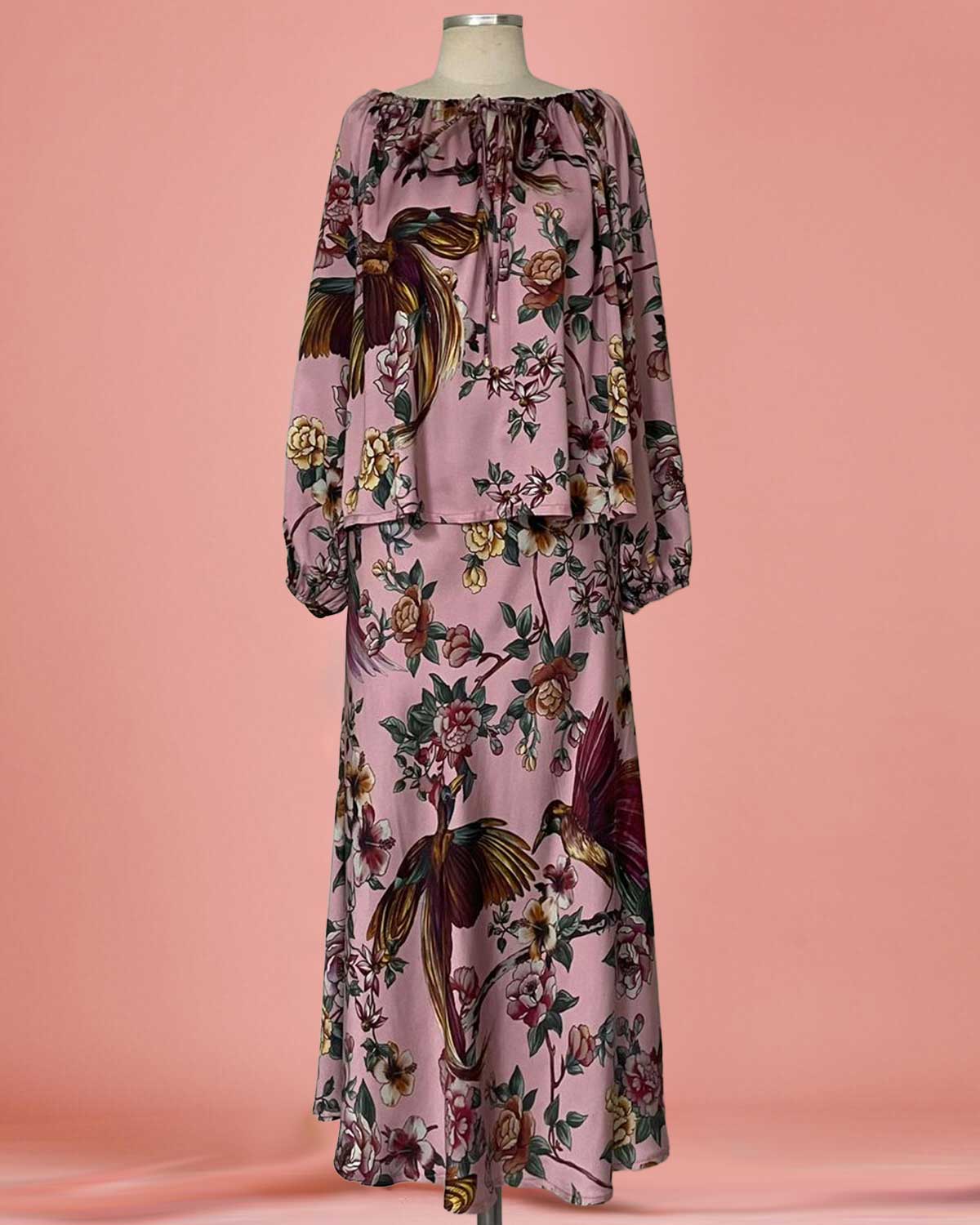 Com uma estampa exclusiva de pássaros e flores tropicais, o conjunto transforma o vestir em experiência visual. Além disso, o tecido leve proporciona frescor e conforto em dias quentes, tornando-se ideal para momentos que pedem beleza e liberdade. Se você procura uma peça que una sofisticação e naturalidade, encontrou a escolha perfeita.