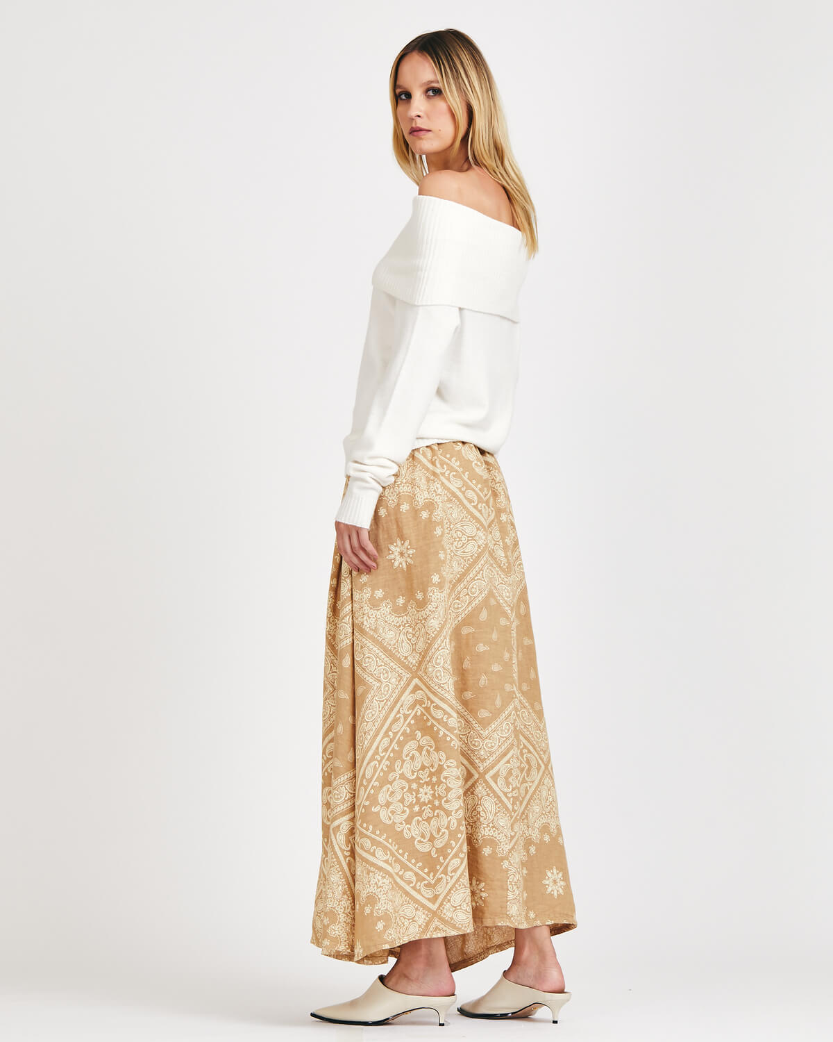 A saia La Fenice Bandana Linho da nova coleção Lino é a peça perfeita para unir leveza, movimento e sofisticação.