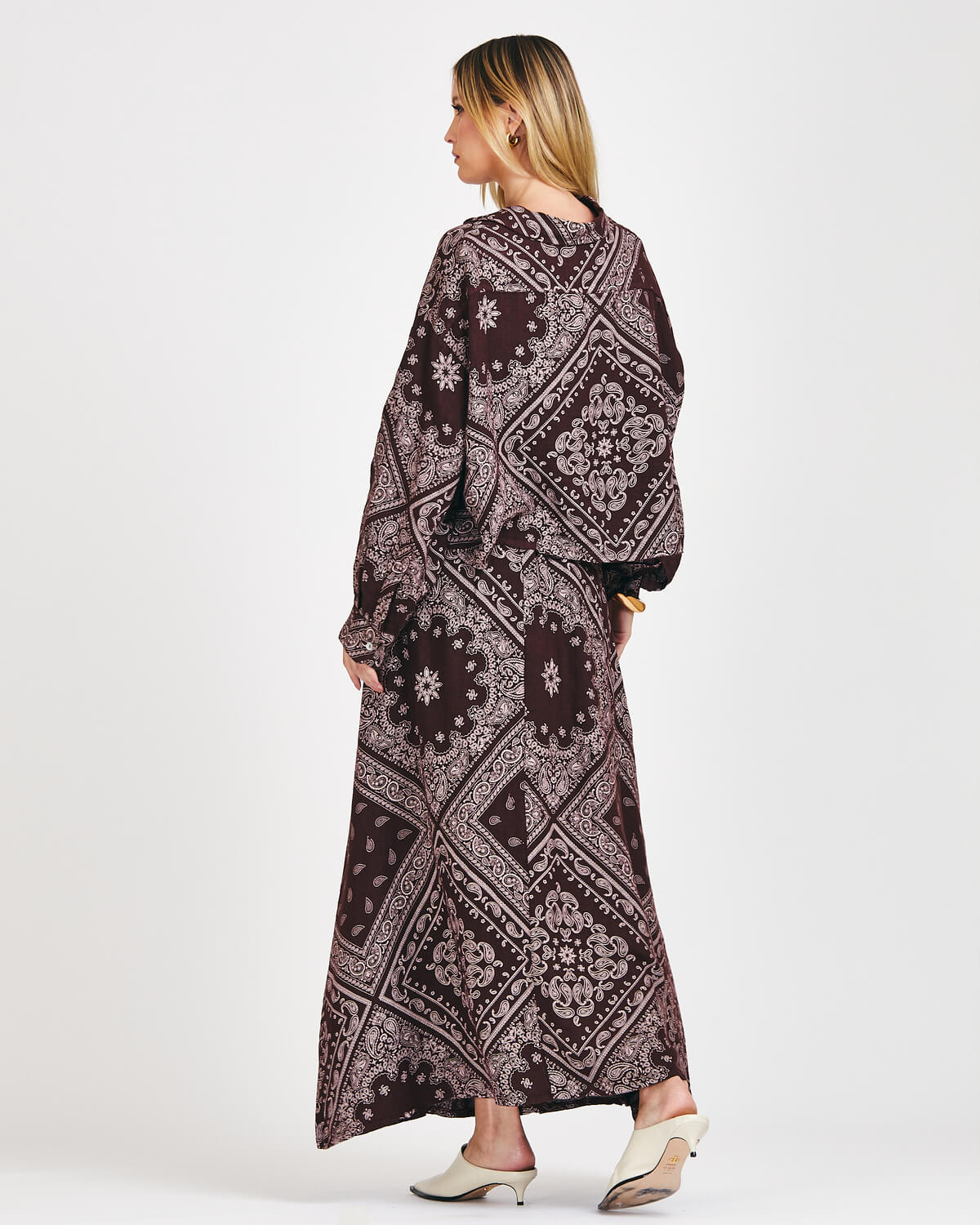 Confeccionada em 100% linho natural, sua modelagem fluida e comprimento longo criam um efeito elegante e confortável ao vestir.