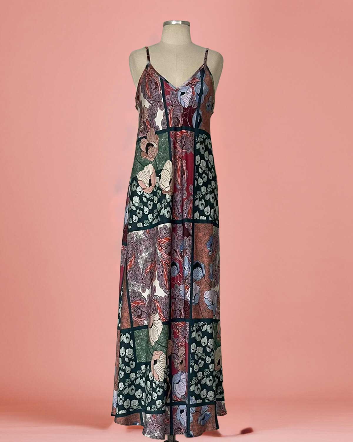 Com um design atemporal e sofisticado, o Vestido Regata Longo em Satin Patchwork é a escolha perfeita para quem busca estilo com conforto.